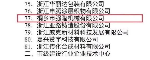가흥시 인민정부사무소는 혁신 주도 개발 전략을 더욱 구현하기 위해 기업 기술 혁신 시스템 구축을 강화하고 기업의 기술 혁신 역량과 수준을 향상하며 경제 전환과 업그레이드를 촉진해야 한다고 분명히 지적했습니다. 따라서 자싱시 인민정부는 84개 기업을 2017년 자싱시 기업 기술 센터로 평가했습니다. 우리 회사인 Tongxiang Qianglong Machinery Co., Ltd.가 목록에 있는 것을 영광으로 생각합니다.